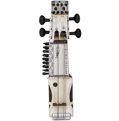 Sitar – Indian classical string instrument with 13 sympathetic strings, 6-7 melody strings, and a resonant body fashioned from a gourd base. The frets are movable.
